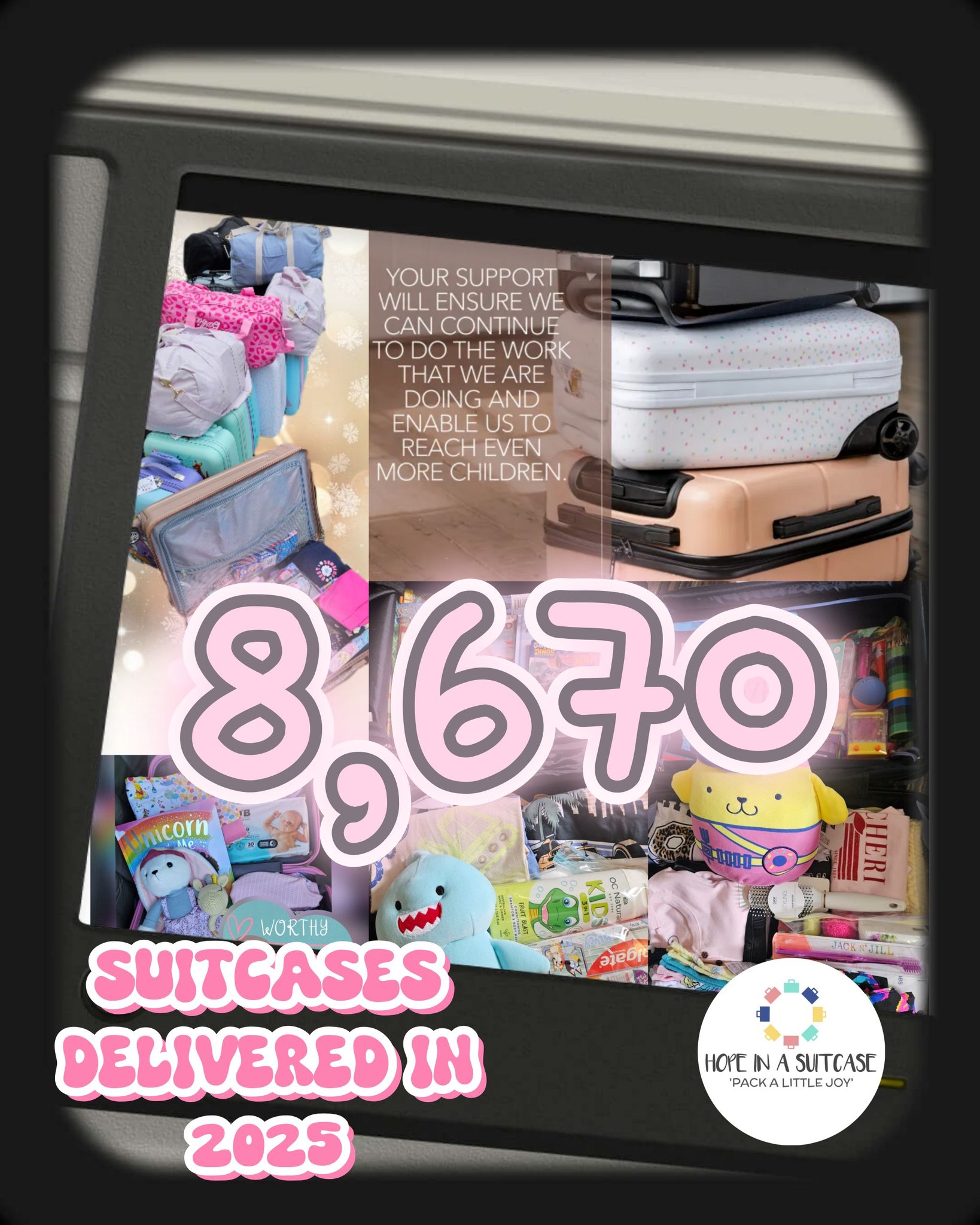 In 2021 we provided 3024 suitcases, in 2022; 3817, in 2023; 5013, to worthy children in Australia. Sadly the demand is increasing every year but we will continue to endeavour to provide EVERY child who enters out-of-home care, a suitcase of HOPE of their very own.
